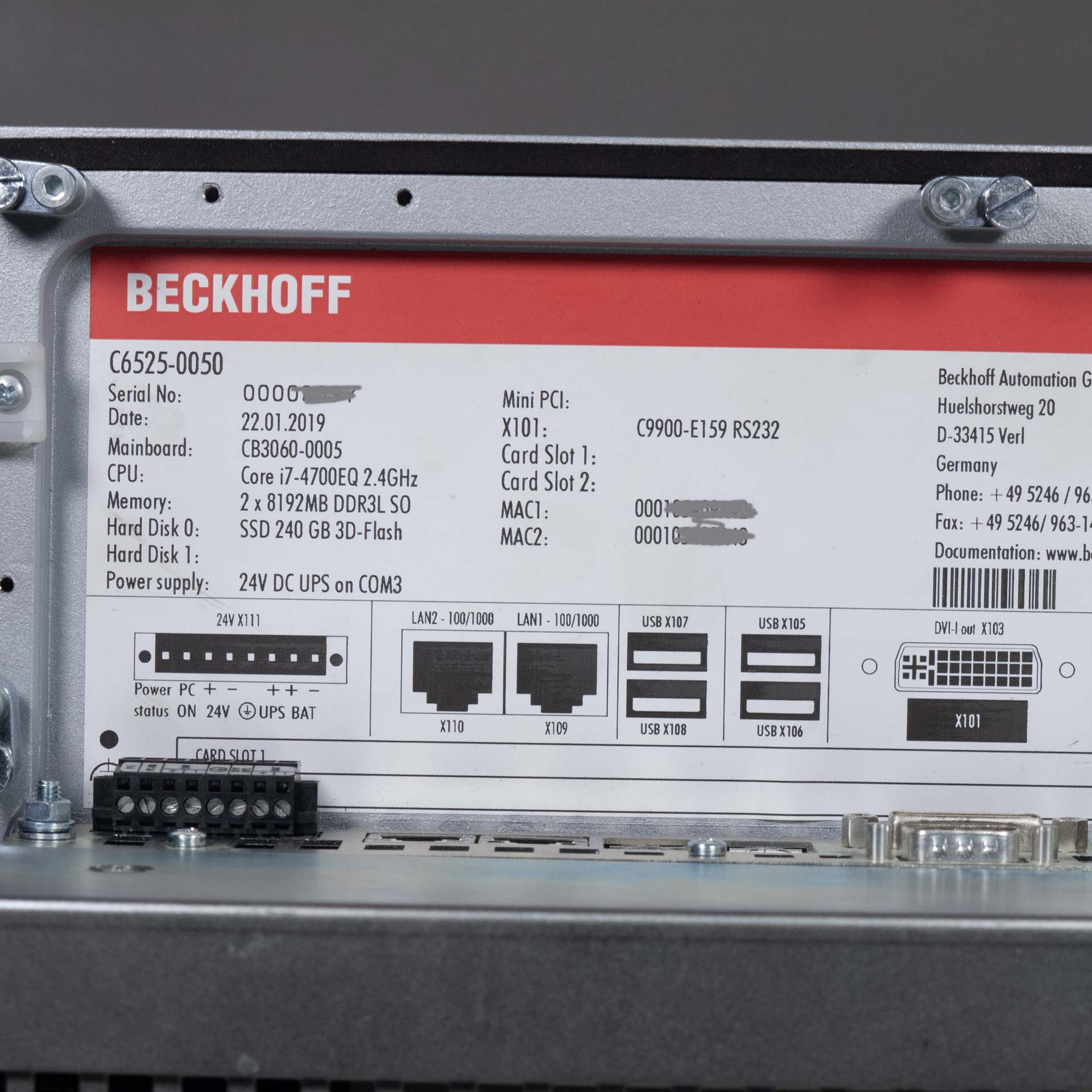 Beckhoff C6525-0050 i7-4700EQ 16GB Ram W10 LTSB 2016 + Win 7 Emb Pro IPC